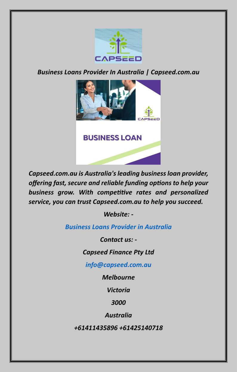 Business Loans Provider In Australia Capseed.com