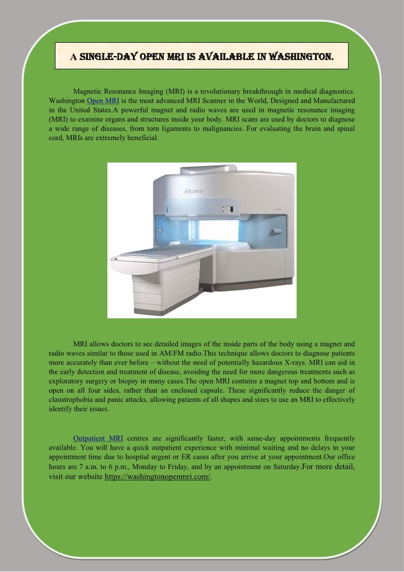 A single-day OPEN MRI is available In Washington.