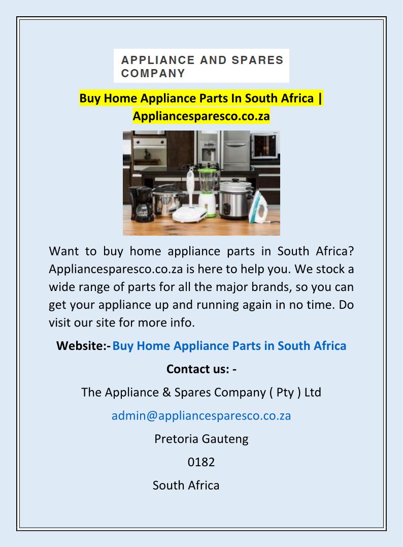 Buy Home Appliance Parts In South Africa | Appliancesparesco.co.za
