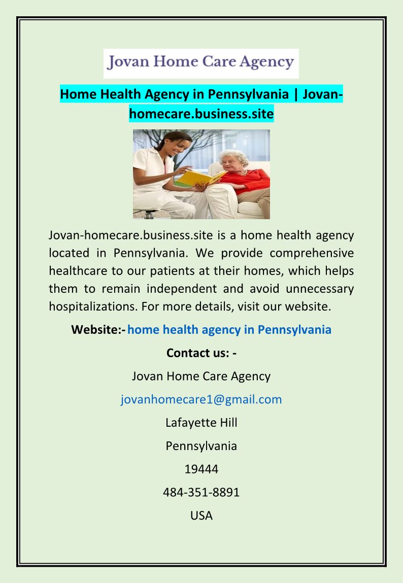 Home Health Agency in Pennsylvania | Jovan-homecare.business.site