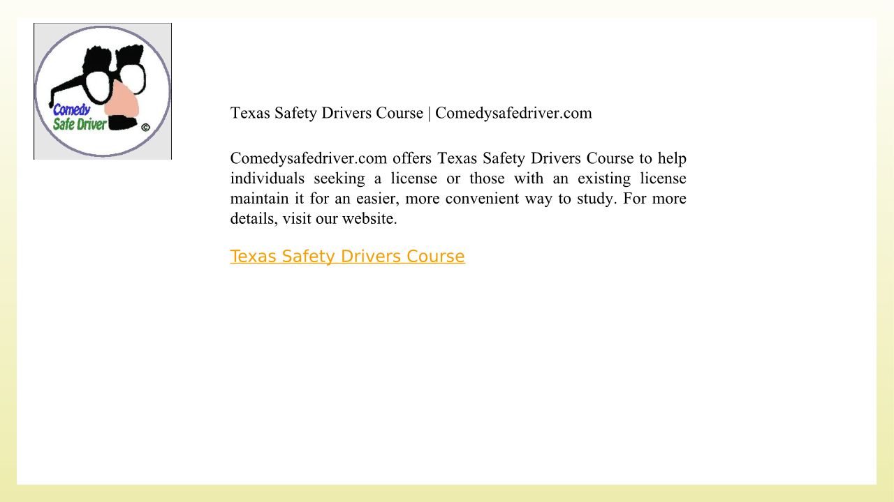 Texas Safety Drivers Course Comedysafedriver.com