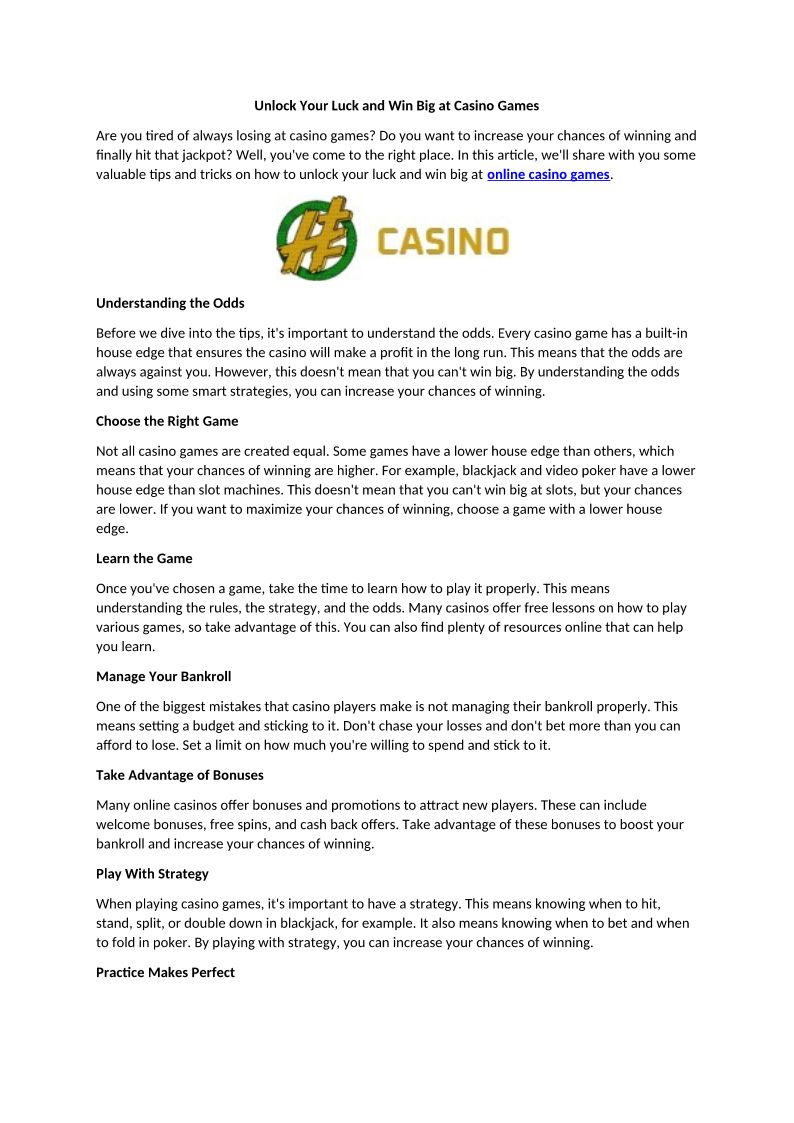 Unlock Your Luck and Win Big at Casino Games