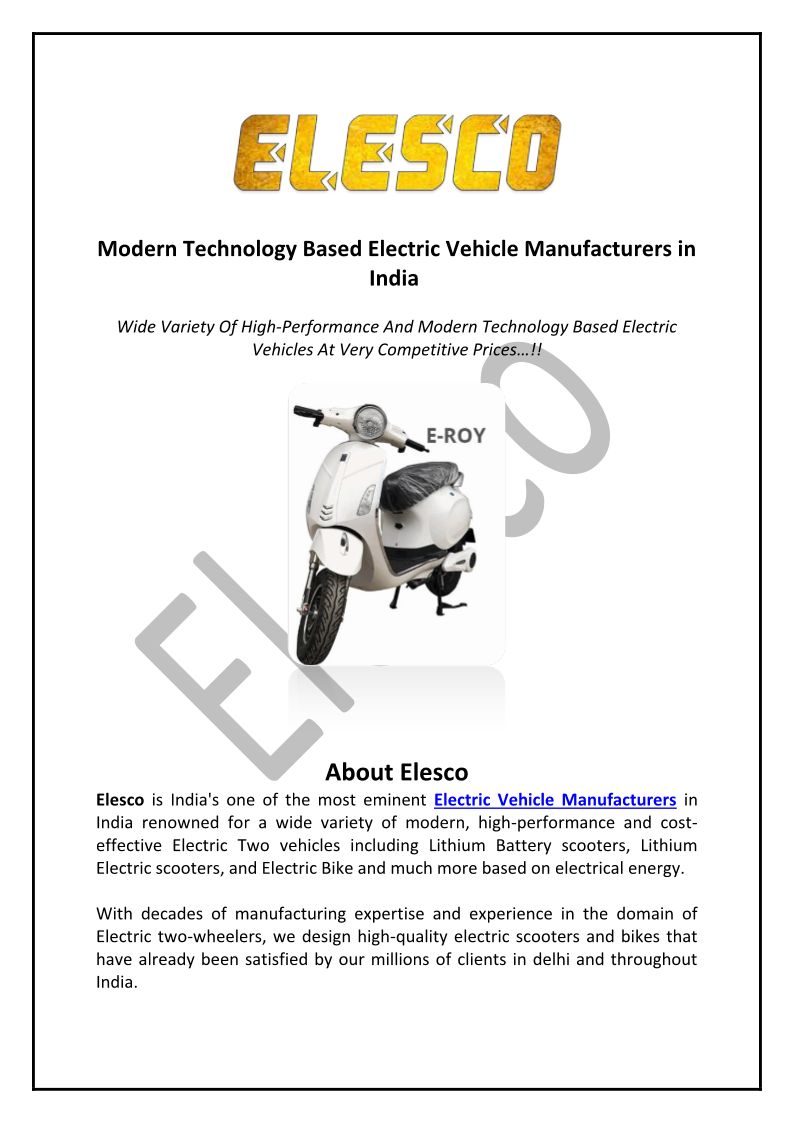 Modern Technology Based Electric Vehicle Manufacturers in India