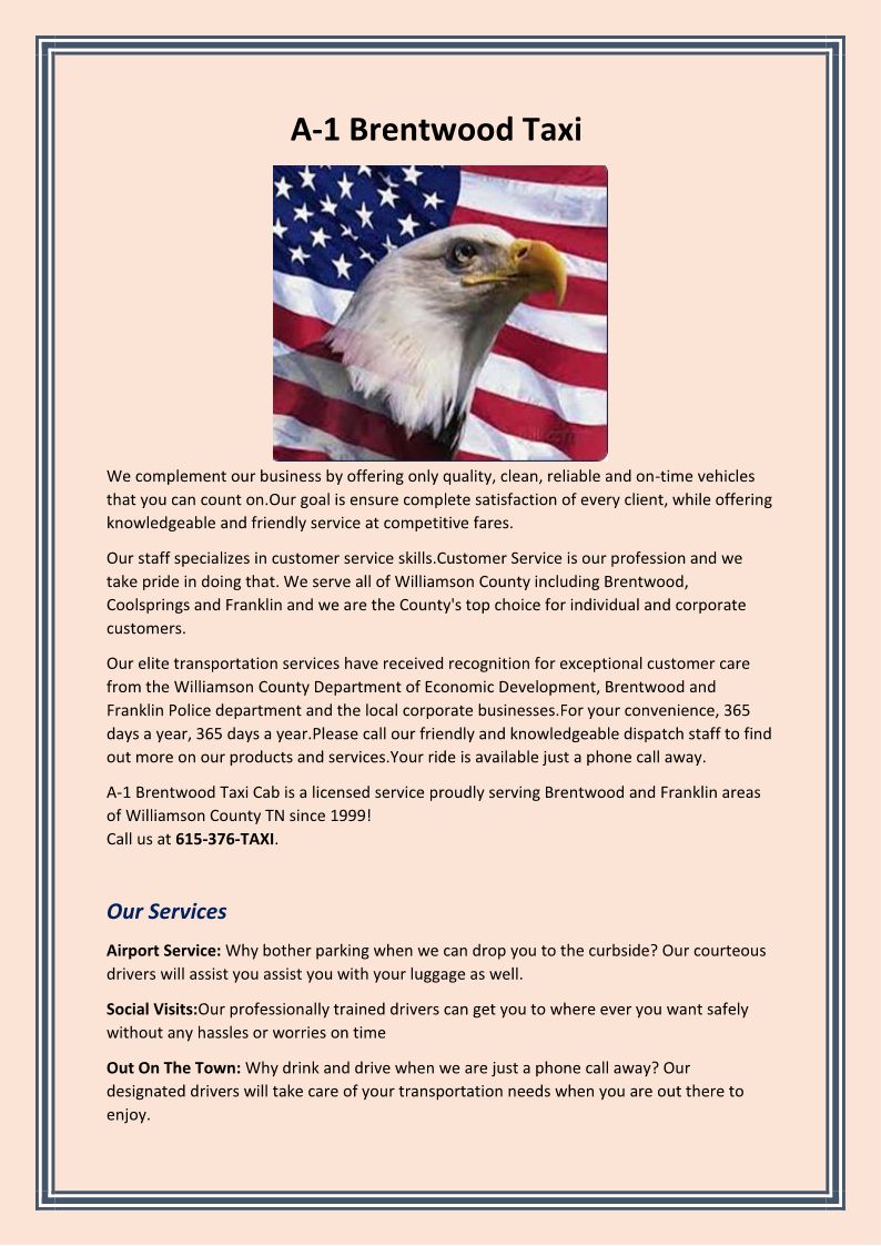 Brentwood Taxi Cab - Serviced Zip Codes in and around the Nashville area