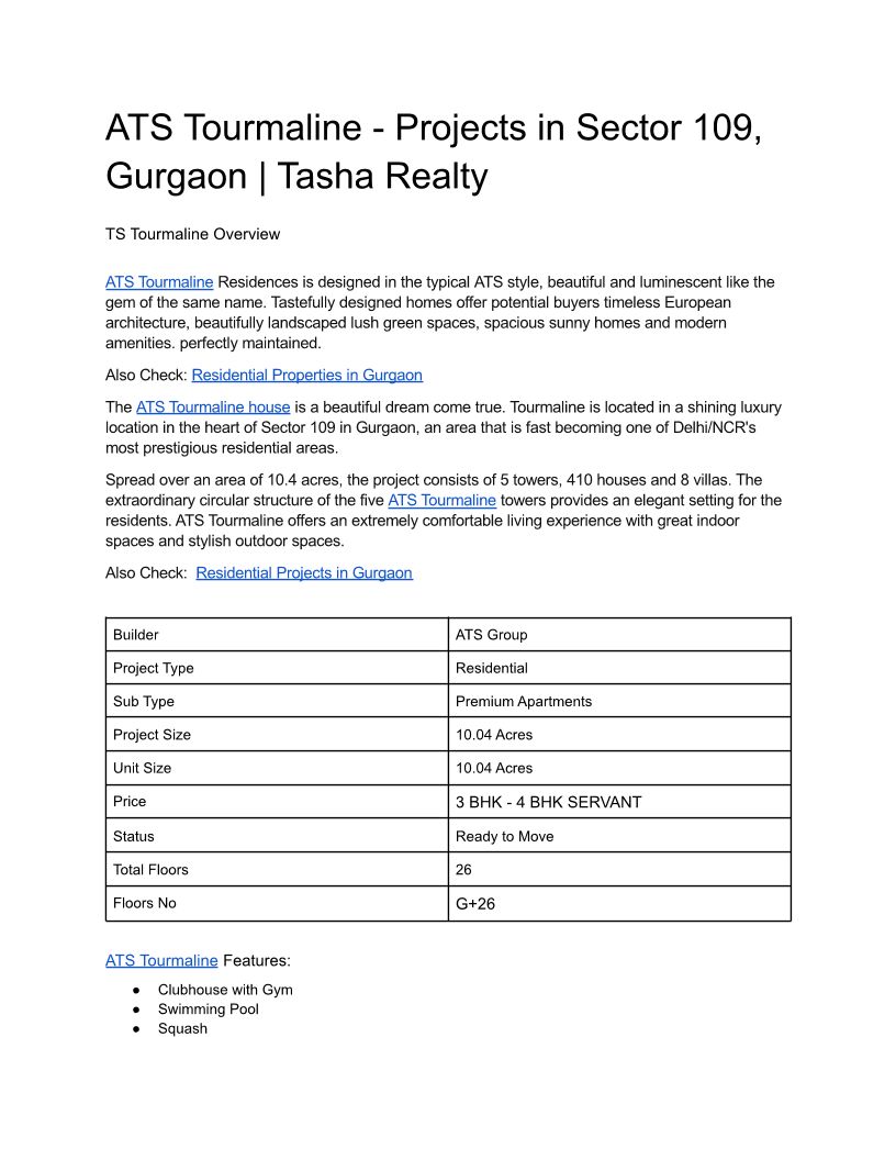 ATS Tourmaline - Projects in Sector 109, Gurgaon _ Tasha Realty