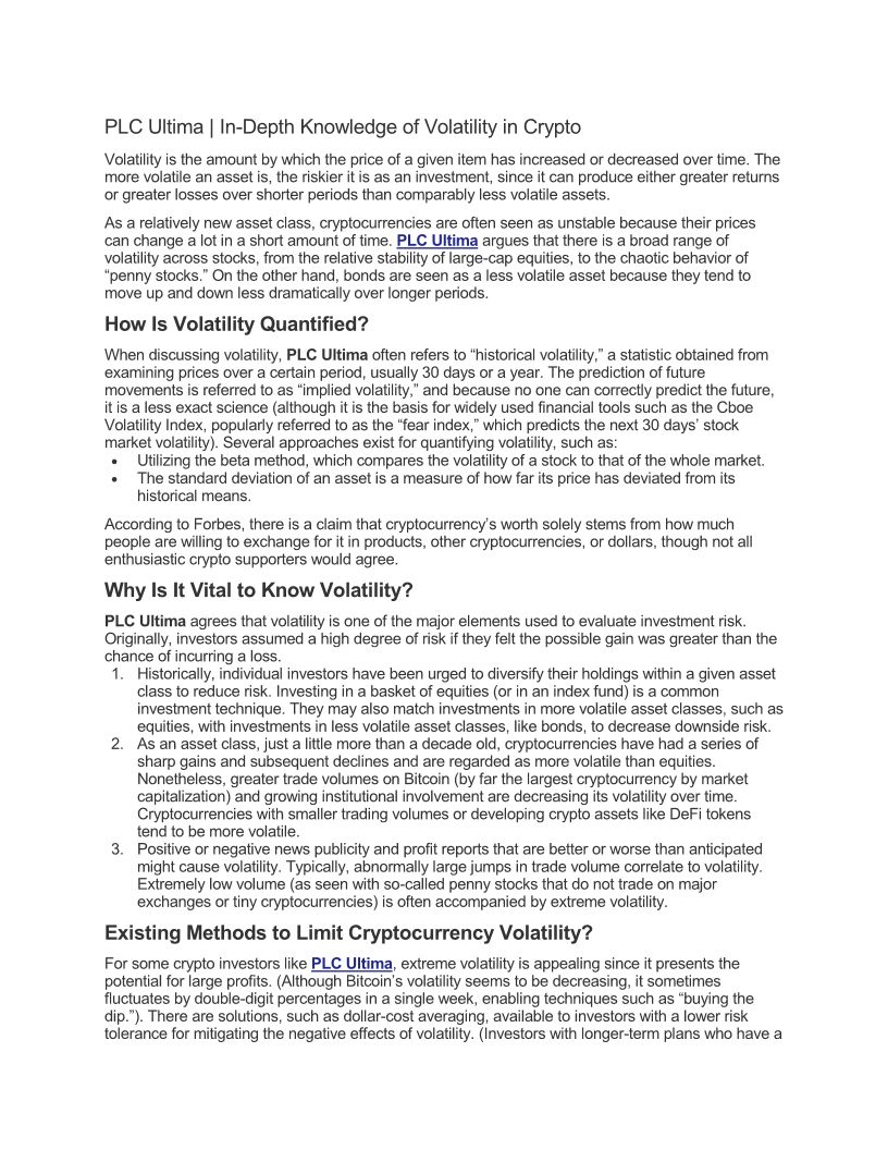 PLC Ultima | In-Depth Knowledge of Volatility in Crypto