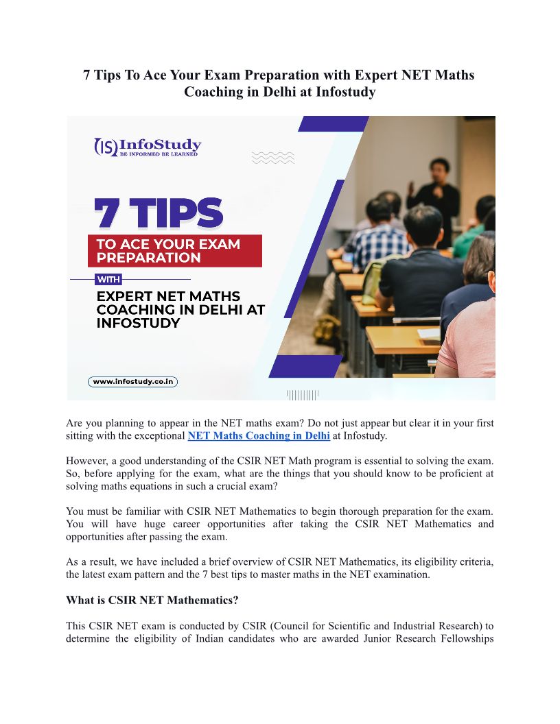 7 Tips to Ace Your Exam Preparation with Expert NET Maths Coaching in Delhi at Infostudy.