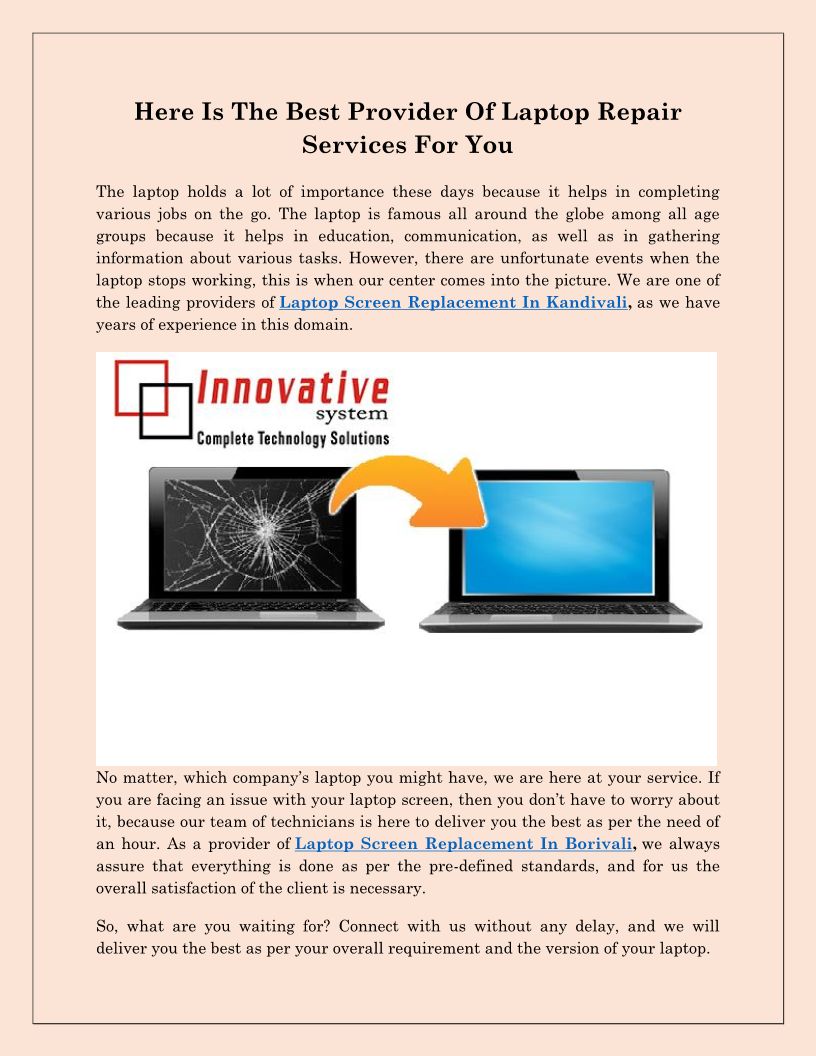 Laptop Screen Replacement In Kandivali - innovativesystem