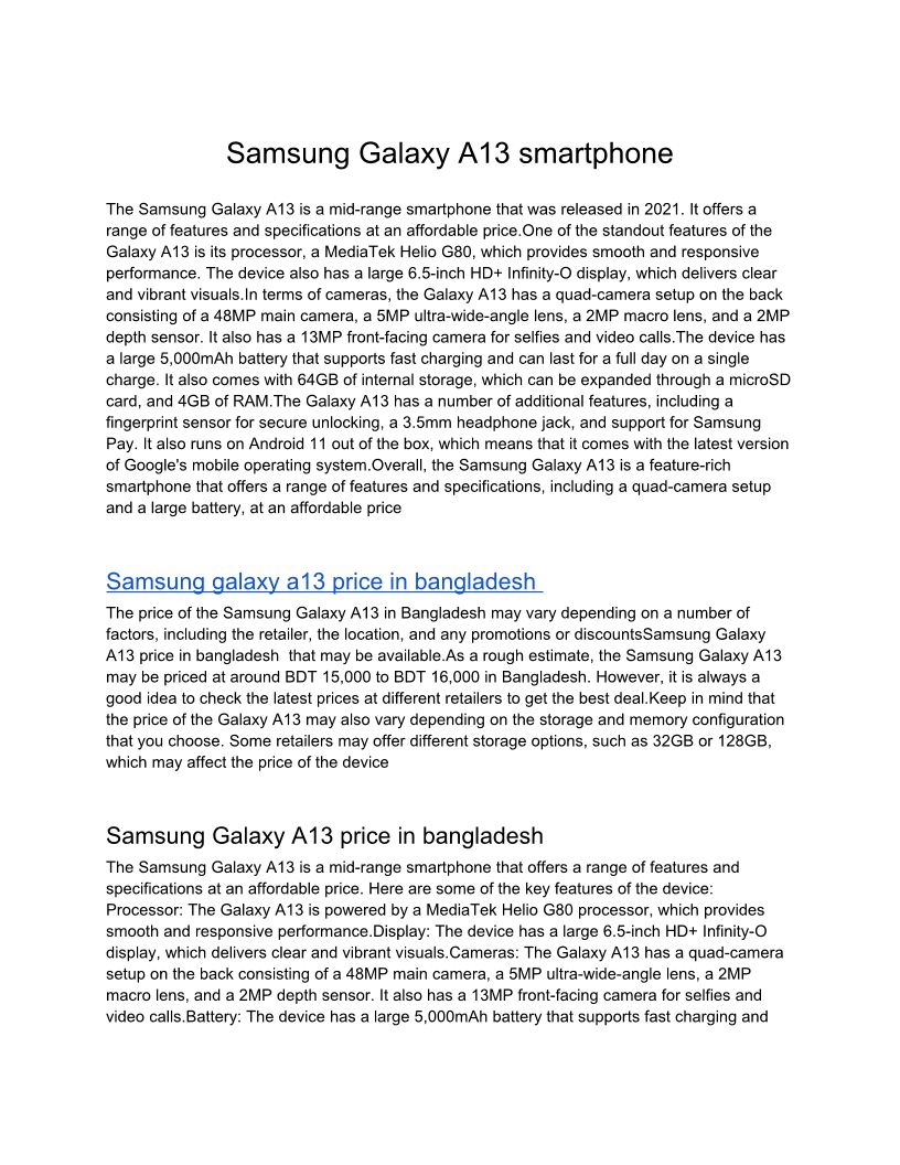 Samsung Galaxy A13 smartphone price in bangladesh