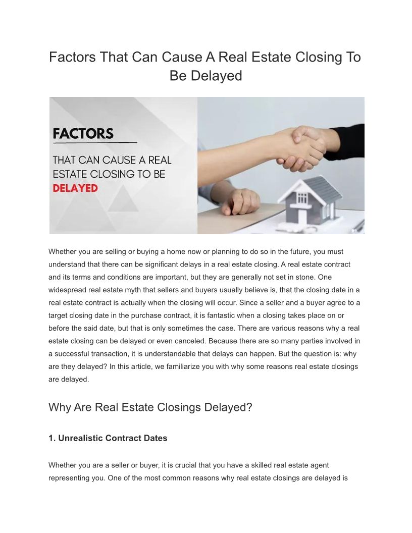 Factors That Can Cause A Real Estate Closing To Be Delayed
