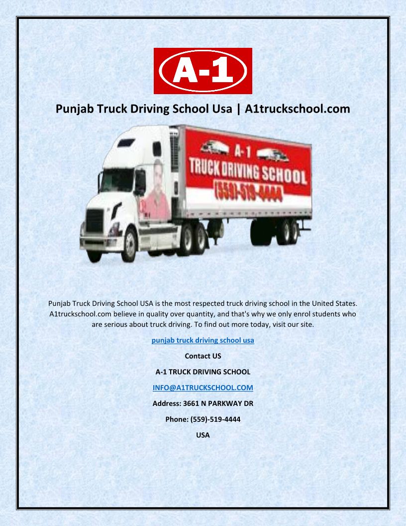 Punjab Truck Driving School Usa | A1truckschool.com