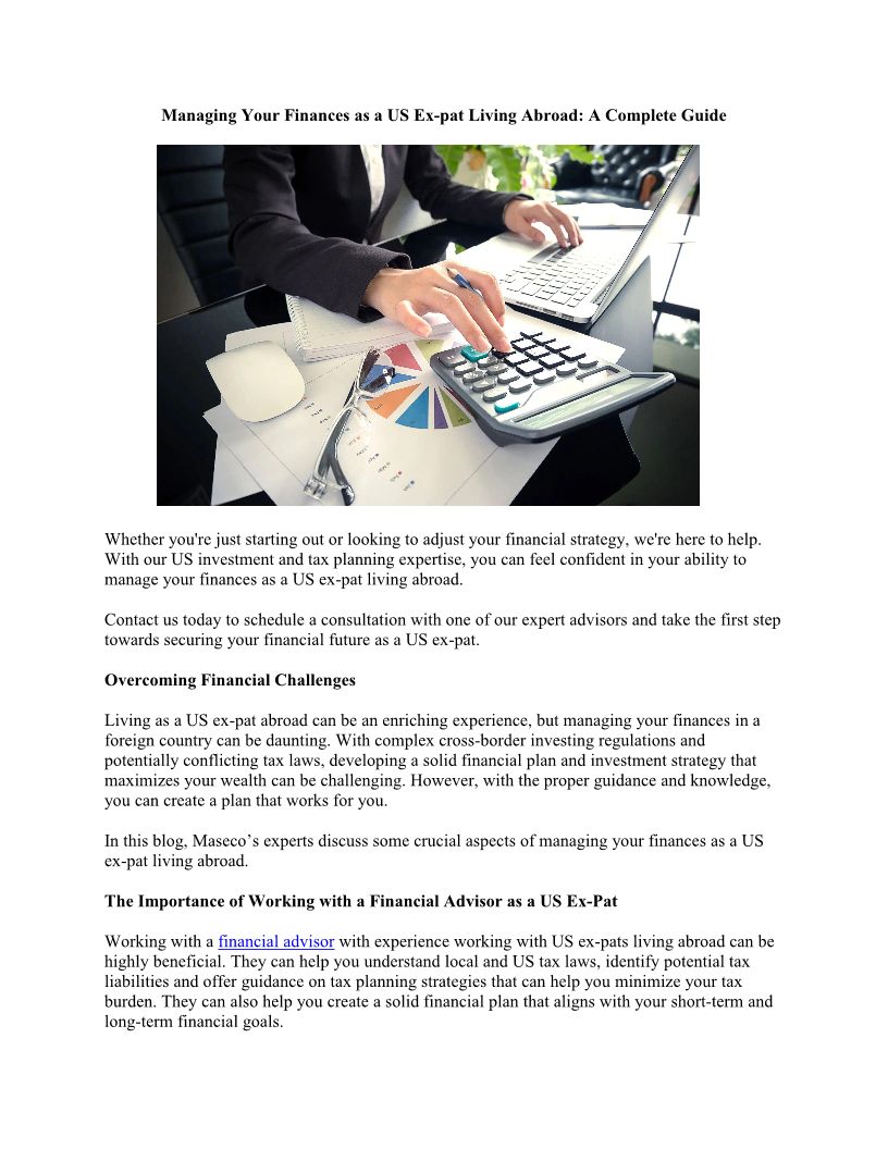 Managing Your Finances as a US Ex-pat Living Abroad: A Complete Guide