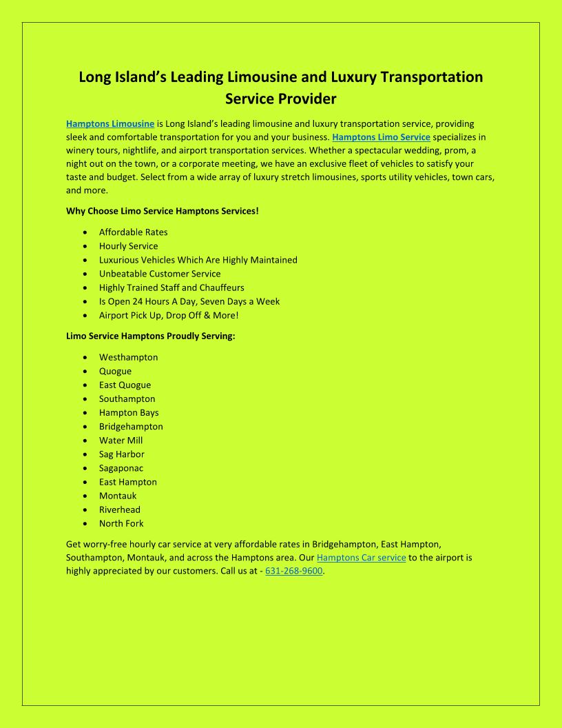 Long Island’s Leading Limousine and Luxury Transportation Service Provider pdf