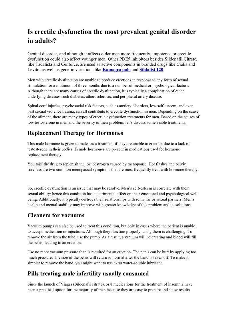 Is erectile dysfunction the most prevalent genital disorder in adults (1)