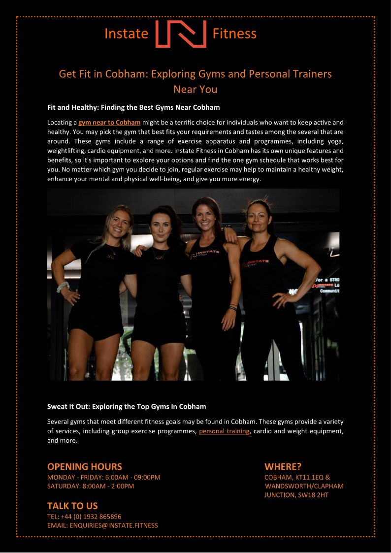 Get Fit in Cobham- Exploring Gyms and Personal Trainers Near You