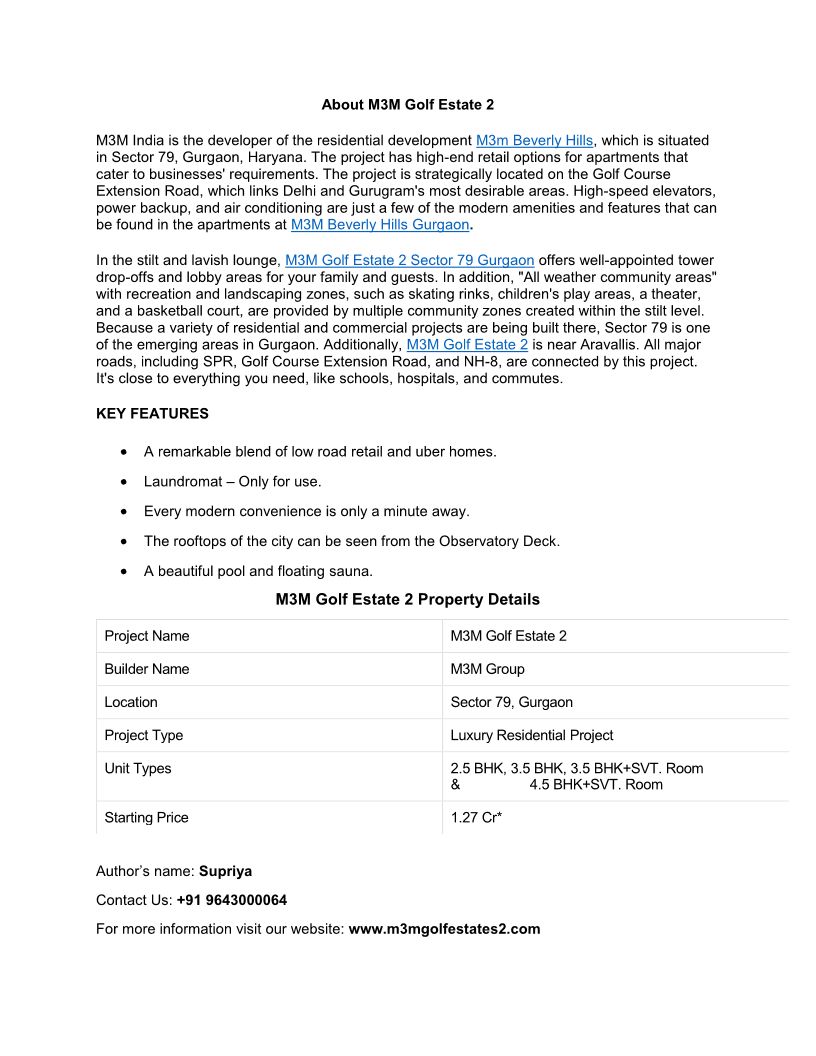 M3M Golf Estate 2 Gurgaon | Call +91 9643000063