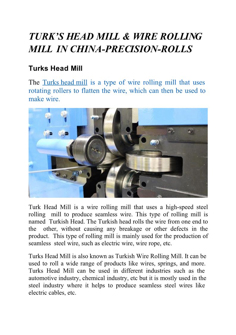 Turks head Mill wire rolling Mill in China-Precision-Rolls