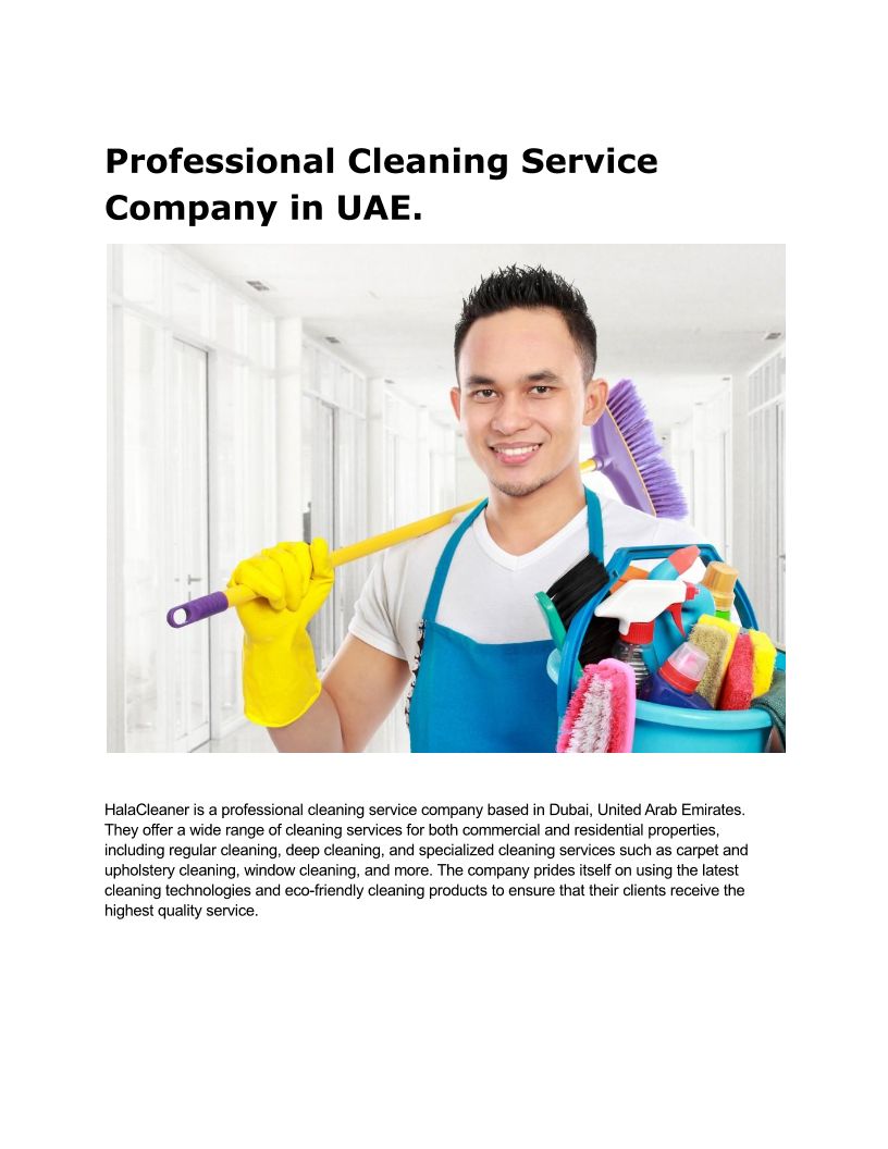 Professional Cleaning Service Company Dubai, UAE.