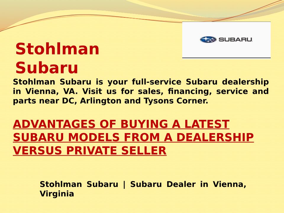 ADVANTAGES OF BUYING A LATEST SUBARU MODELS FROM A DEALERSHIP VERSUS PRIVATE SELLER