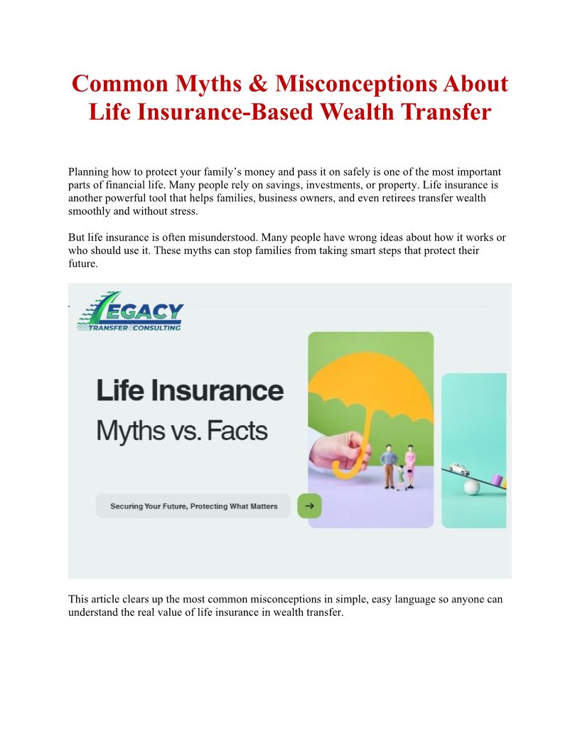 Common Myths & Misconceptions About Life Insurance-Based Wealth Transfer