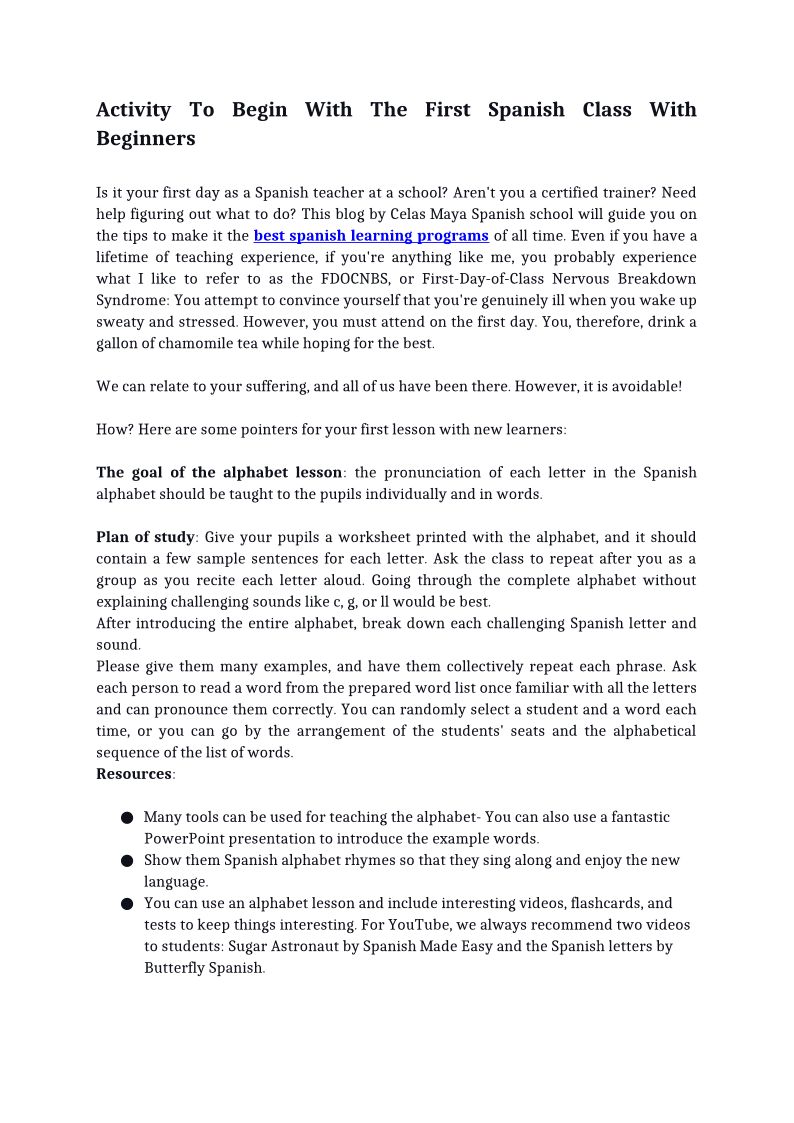 Activity To Begin With The First Spanish Class With Beginners