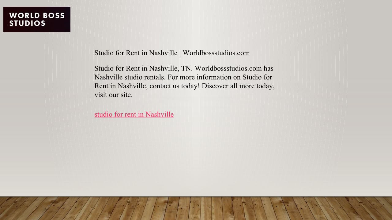 Studio for Rent in Nashville Worldbossstudios.com