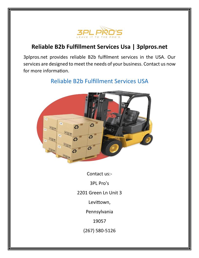 Reliable B2b Fulfillment Services Usa | 3plpros.net