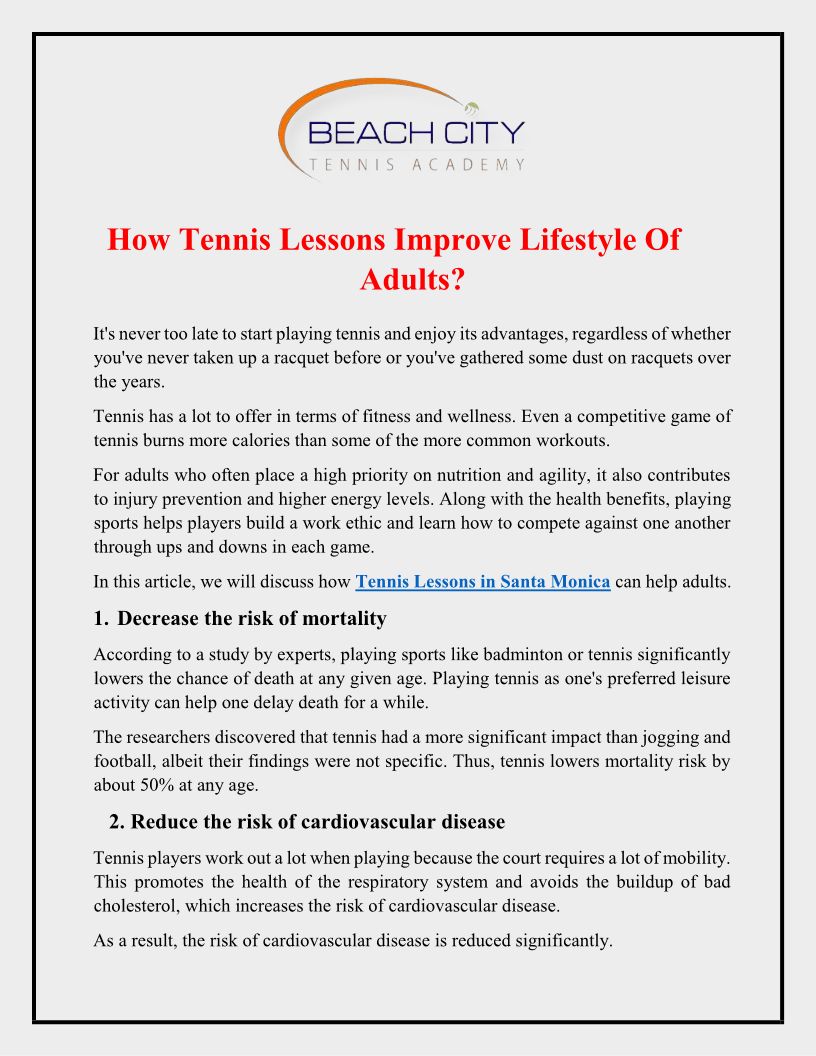 How Tennis Lessons Improve Lifestyle Of Adults