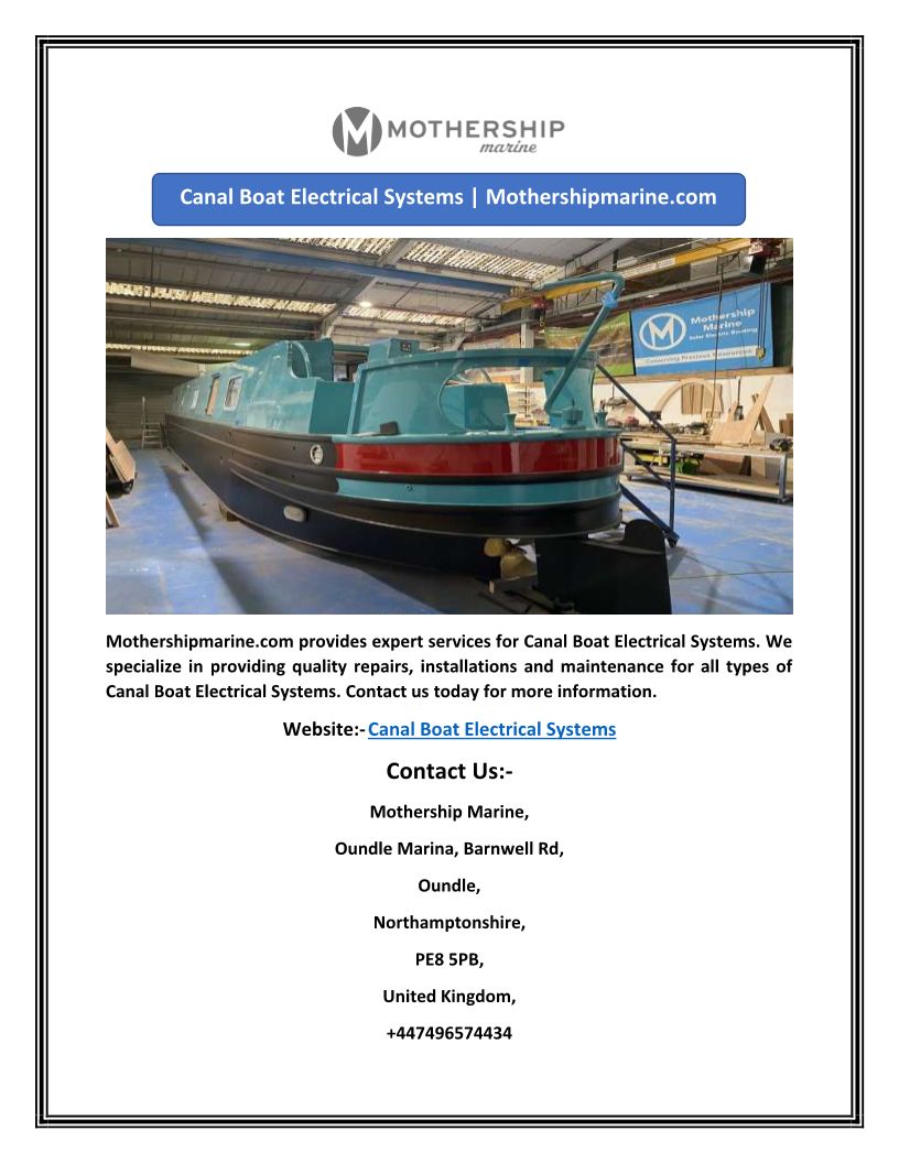 Canal Boat Electrical Systems | Mothershipmarine.com