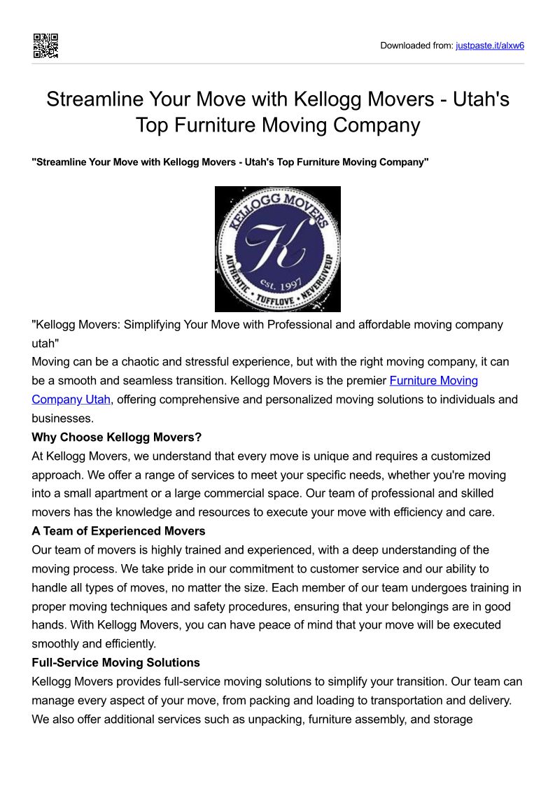 Streamline Your Move with Kellogg Movers - Utah's Top Furniture Moving Company