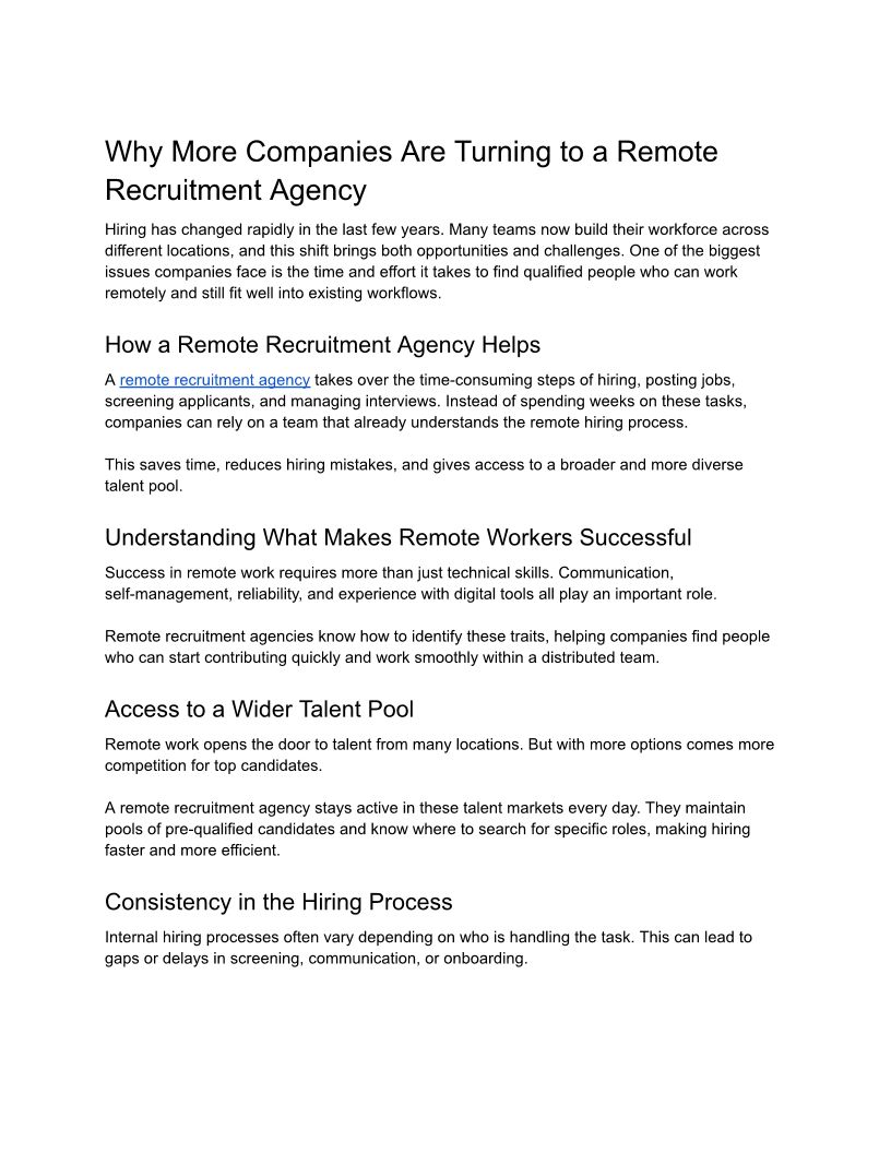 Why More Companies Are Turning to a Remote Recruitment Agency