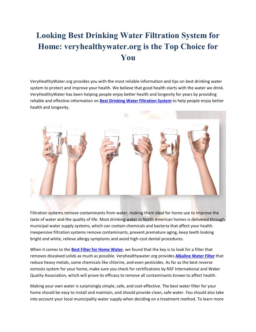 Looking Best Drinking Water Filtration System for Home: veryhealthywater.org is the Top Choice for You