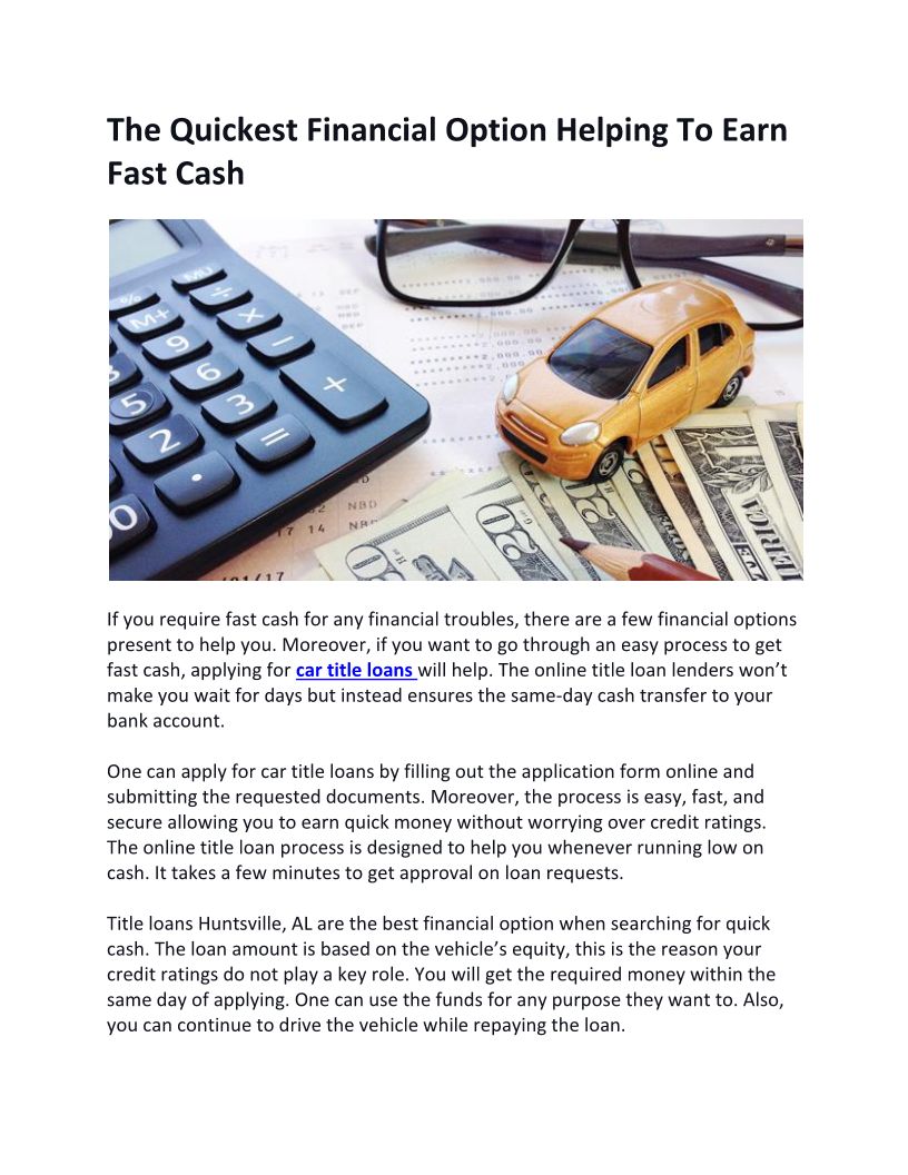 The Quickest Financial Option Helping To Earn Fast Cash