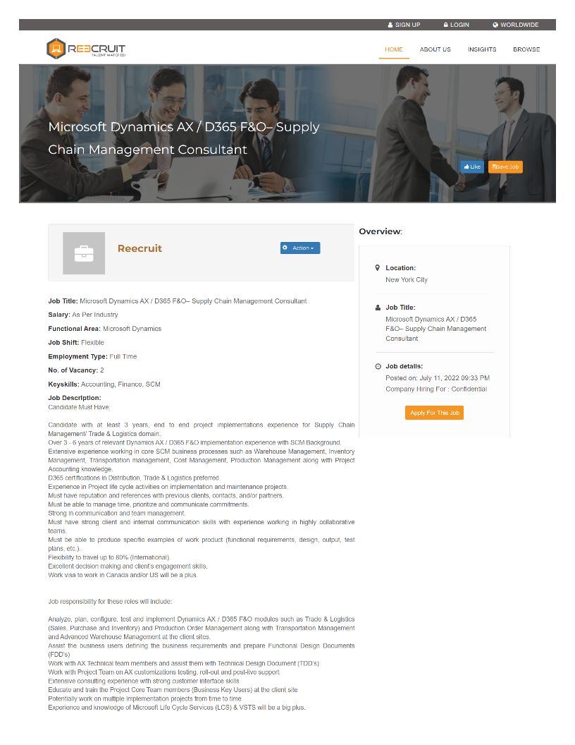 Reecruit, Recruitment, Supply Chain Management Consultant