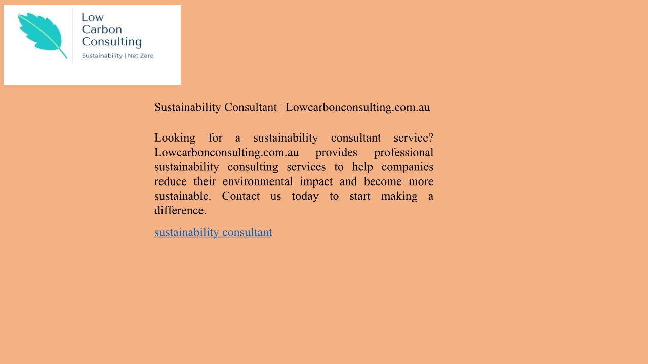 Sustainability Consultant Lowcarbonconsulting.com.au