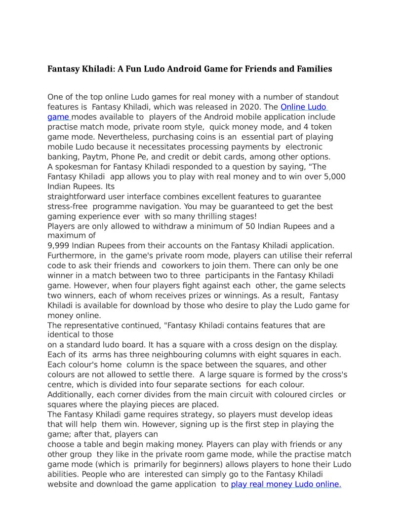 Fantasy Khiladi A Fun Ludo Android Game for Friends and Families