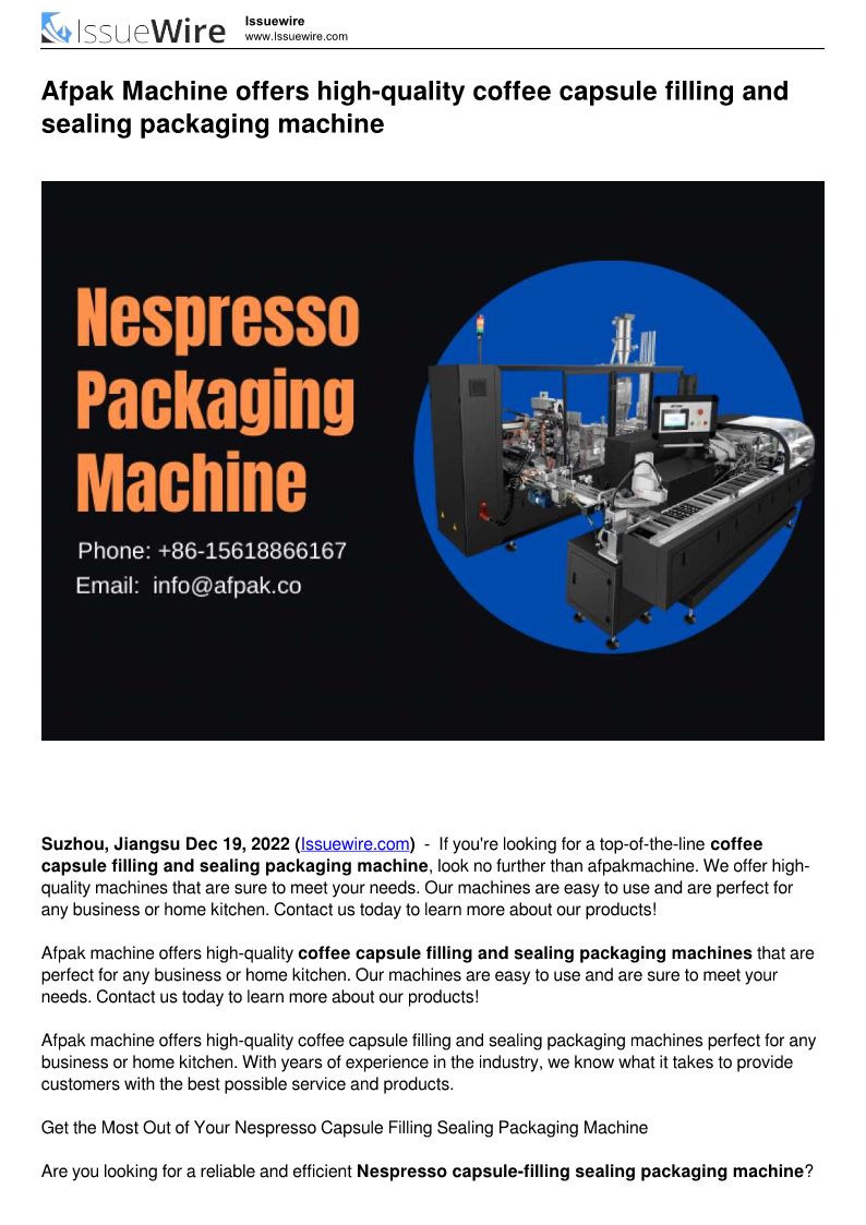 Afpak Machine offers high-quality coffee capsule filling and sealing packaging machine