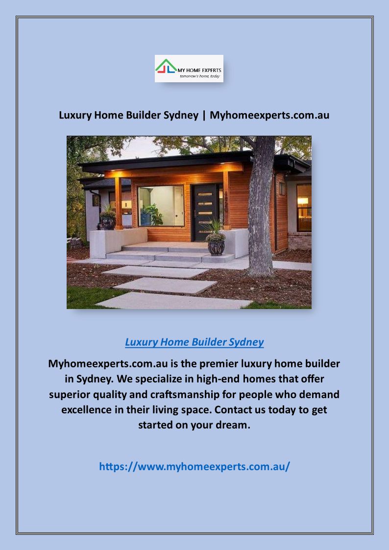 Luxury Home Builder Sydney | Myhomeexperts.com.au