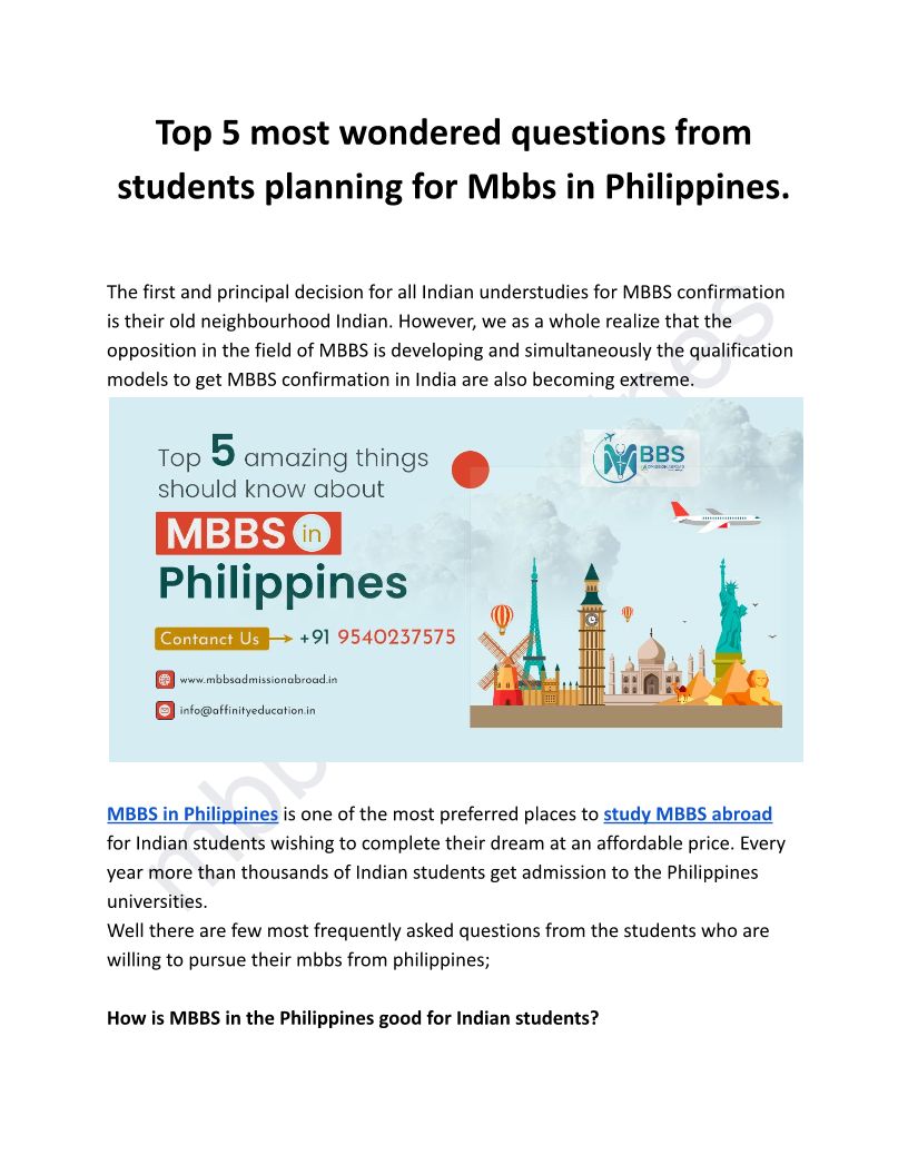 Top 5 amazing things should know about MBBS in Philippines