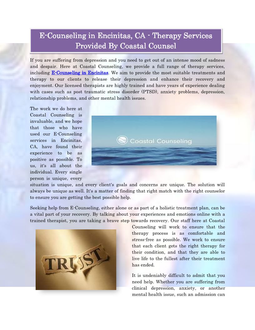 E-Counseling in Encinitas, CA - Therapy Services Provided By Coastal Counsel
