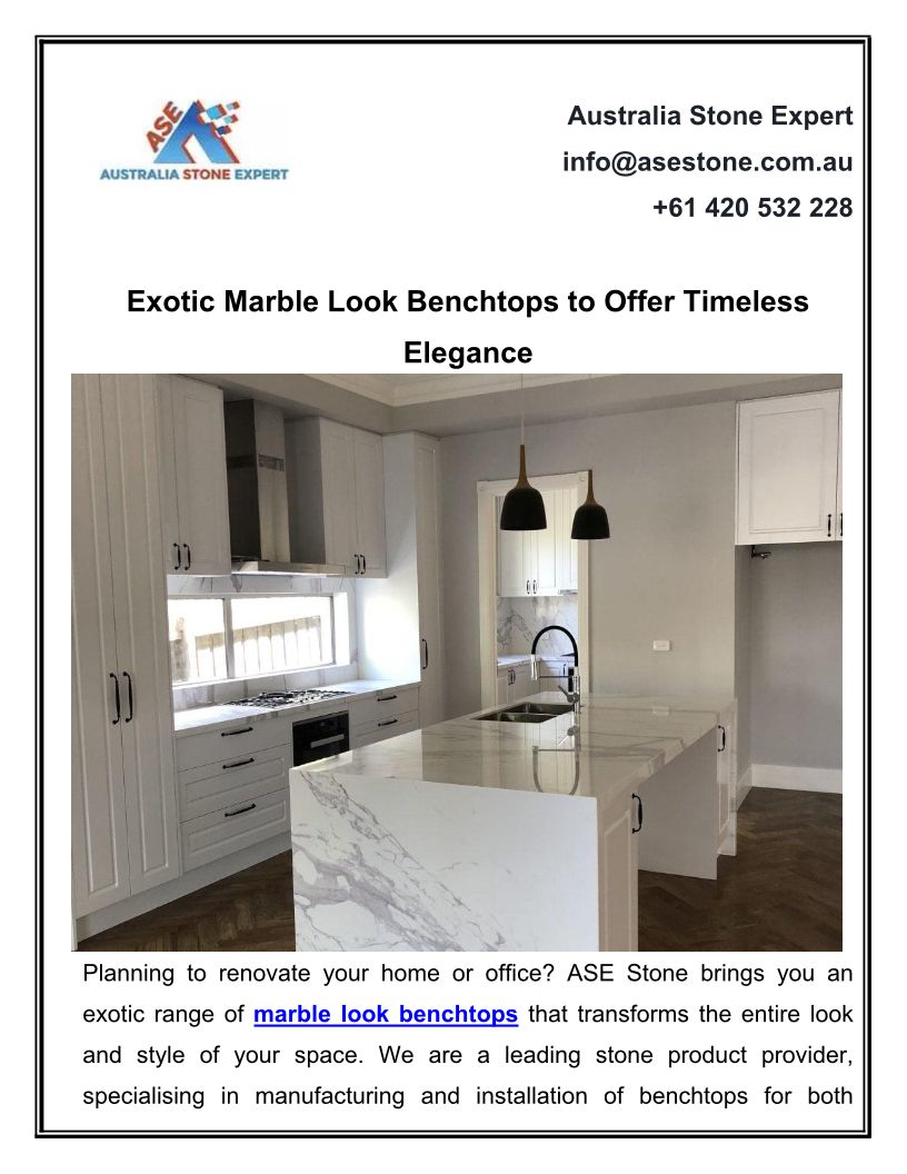 Exotic Marble Look Benchtops to Offer Timeless Elegance