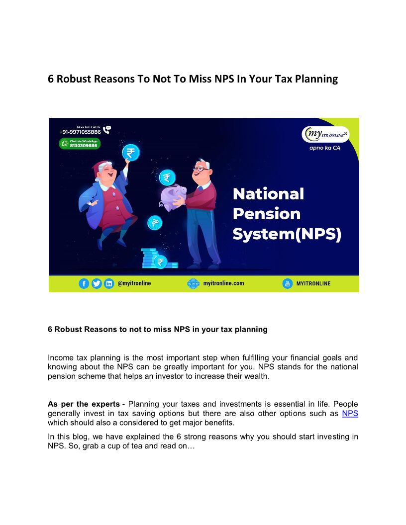 6 Robust Reasons to not to miss NPS in your tax planning.