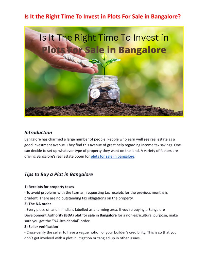 Is It the Right Time To Invest in Plots For Sale in Bangalore