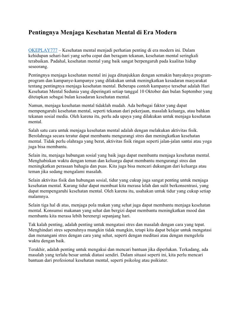 Pentingnya Menjaga Kesehatan Mental di Era Modern