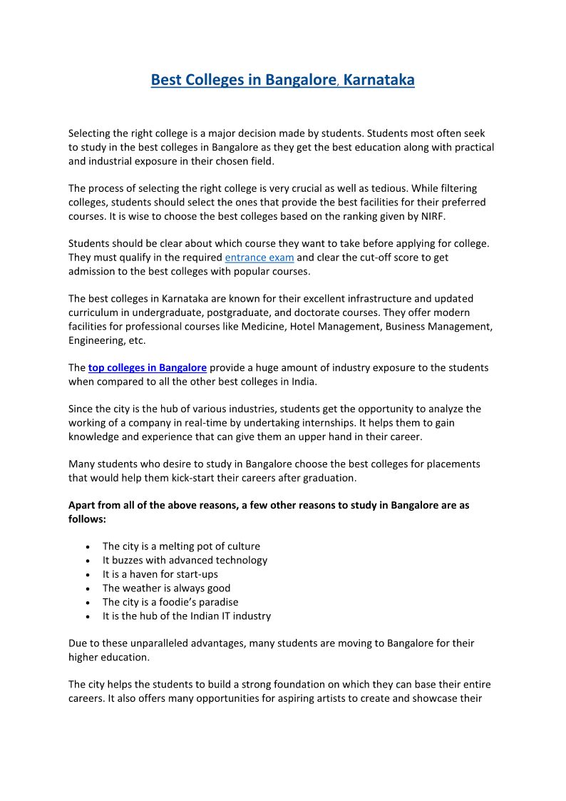 Best Colleges in Bangalore, Karnataka