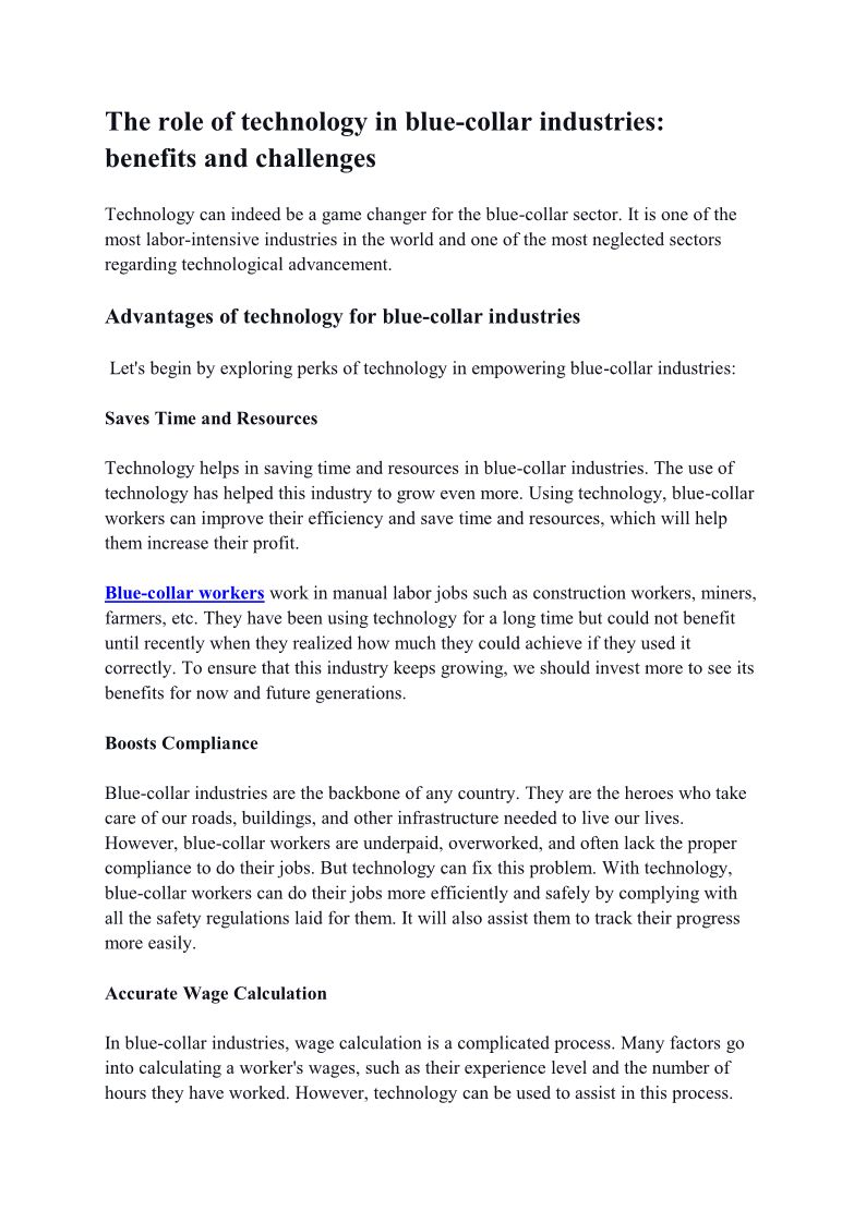 The role of technology in blue-collar industries benefits and challenges