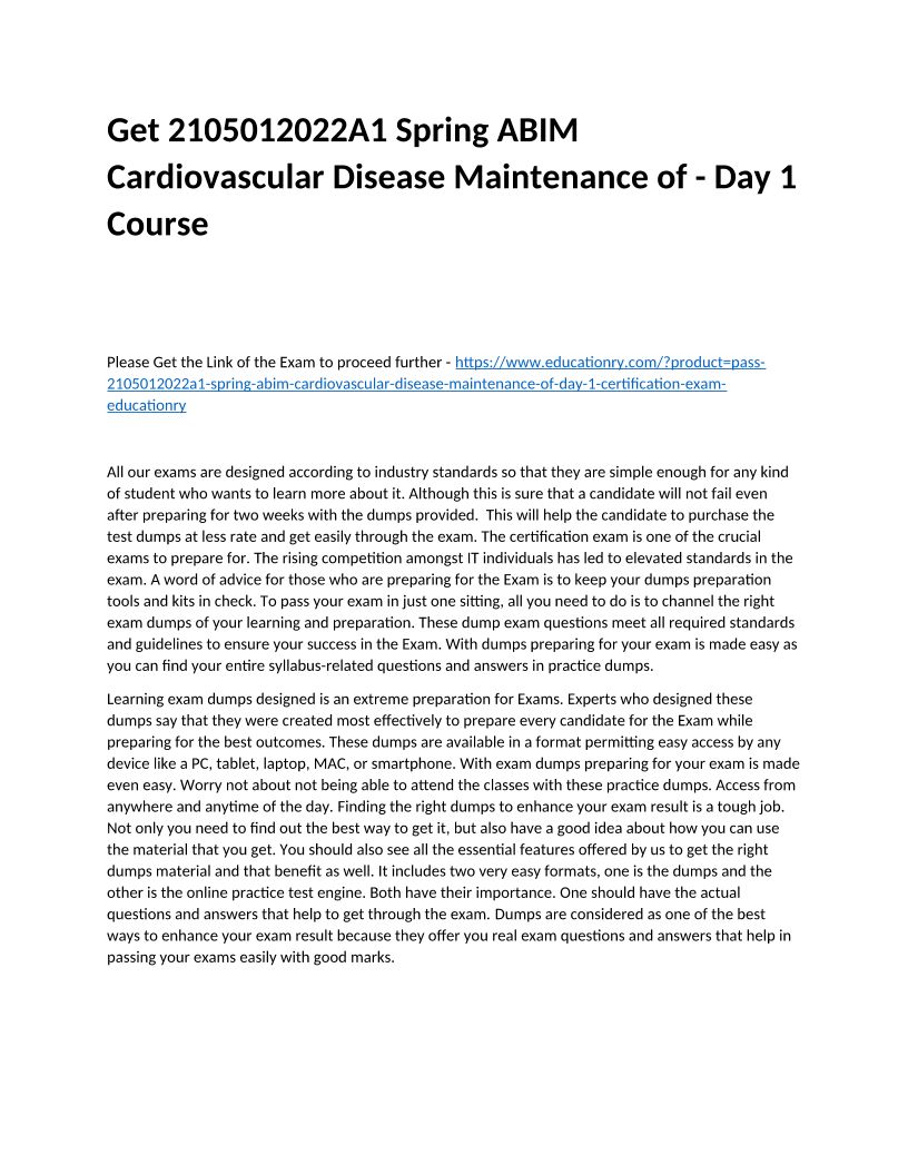 2105012022A1 Spring ABIM Cardiovascular Disease Maintenance of - Day 1