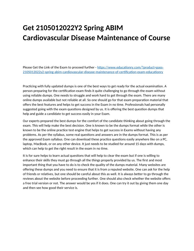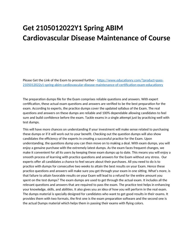 2105012022Y2 Spring ABIM Cardiovascular Disease Maintenance of