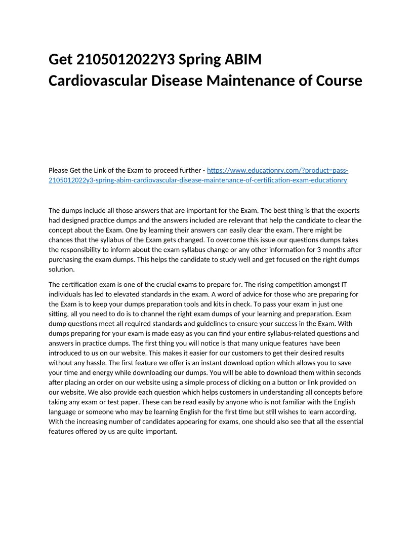2105012022Y1 Spring ABIM Cardiovascular Disease Maintenance of