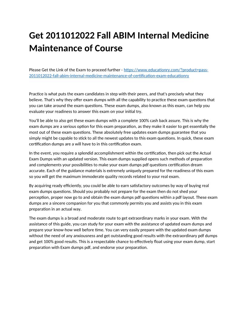 Get 2011012022 Fall ABIM Internal Medicine Maintenance of Course